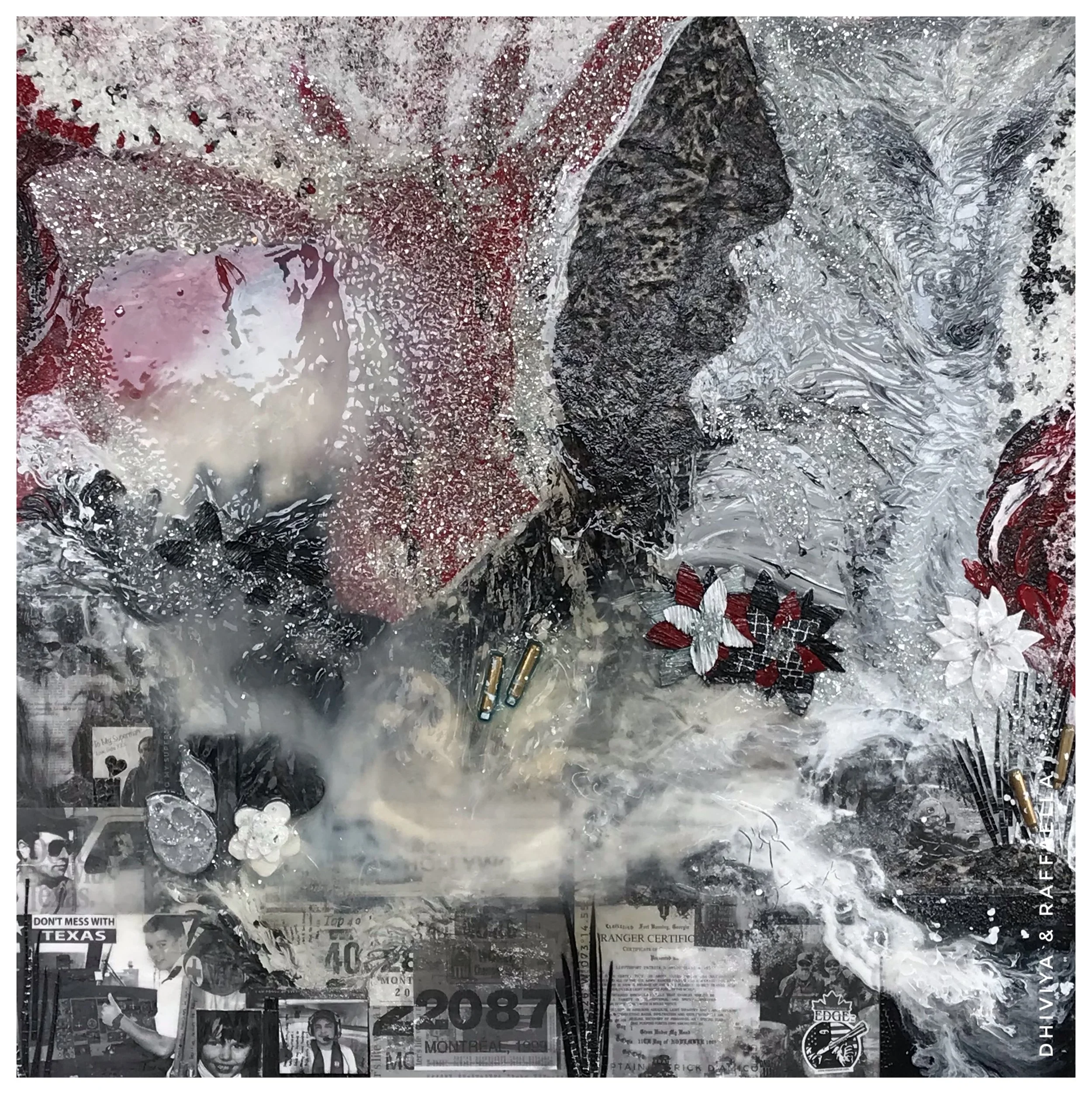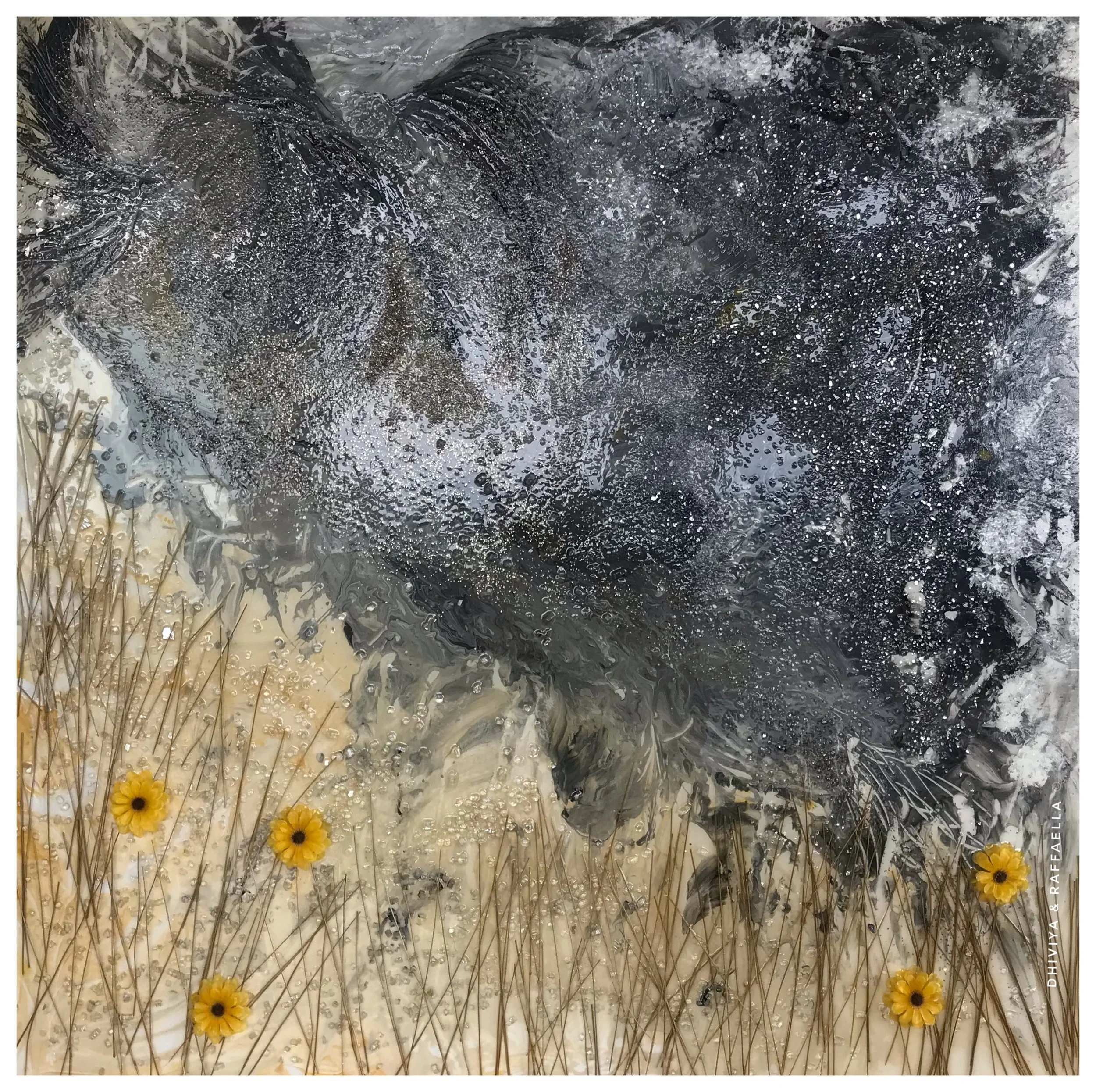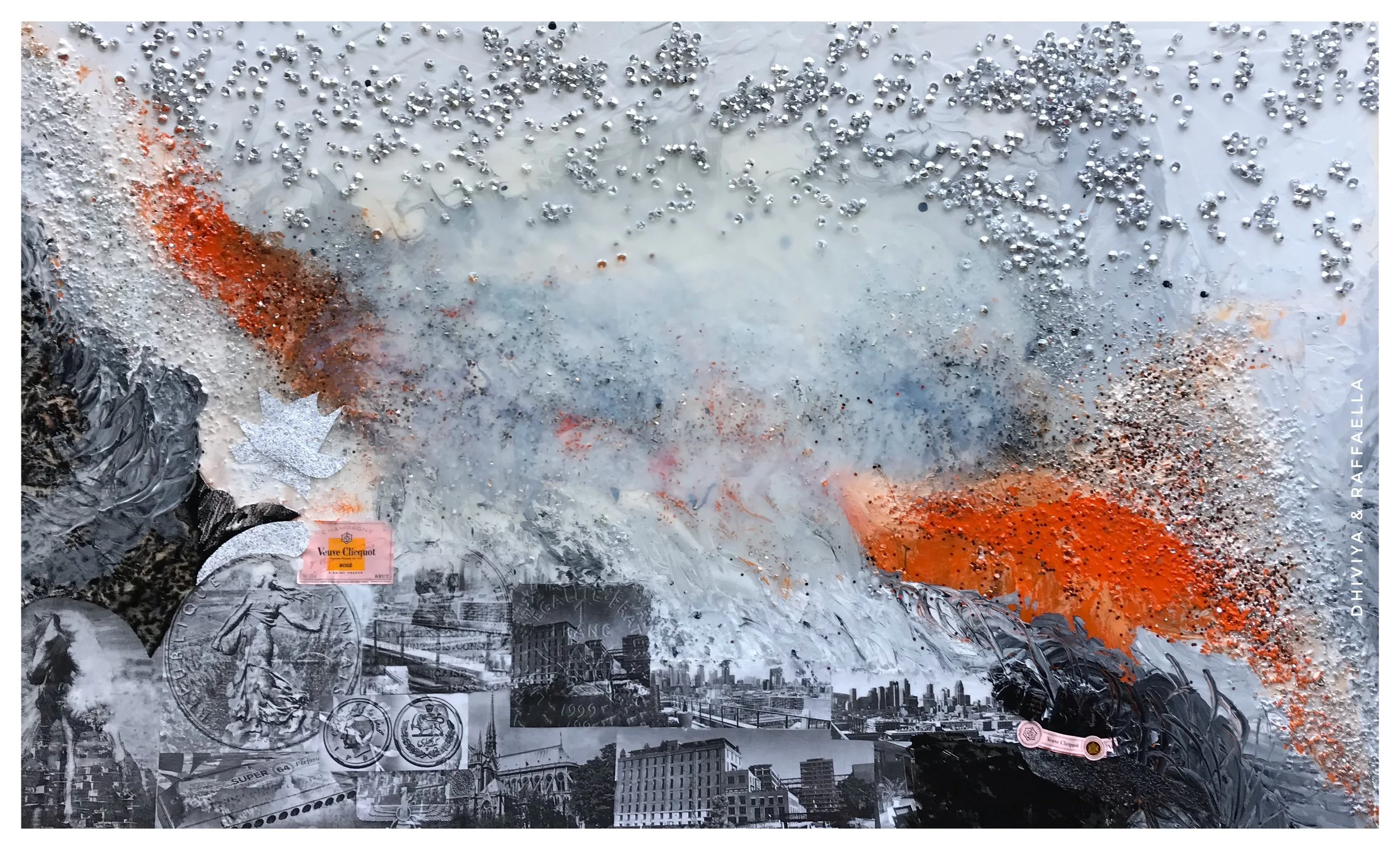 Art started out as privileged bonding time between my daughter and I, constantly experimenting with different mediums and techniques. Guided by intuition, unrestricted by convention, it has become a journey of discovery. To this day, my daughter remains my catalyst, helping me find beauty in chaos. Our works are signed Dhiviya & Raffaella.